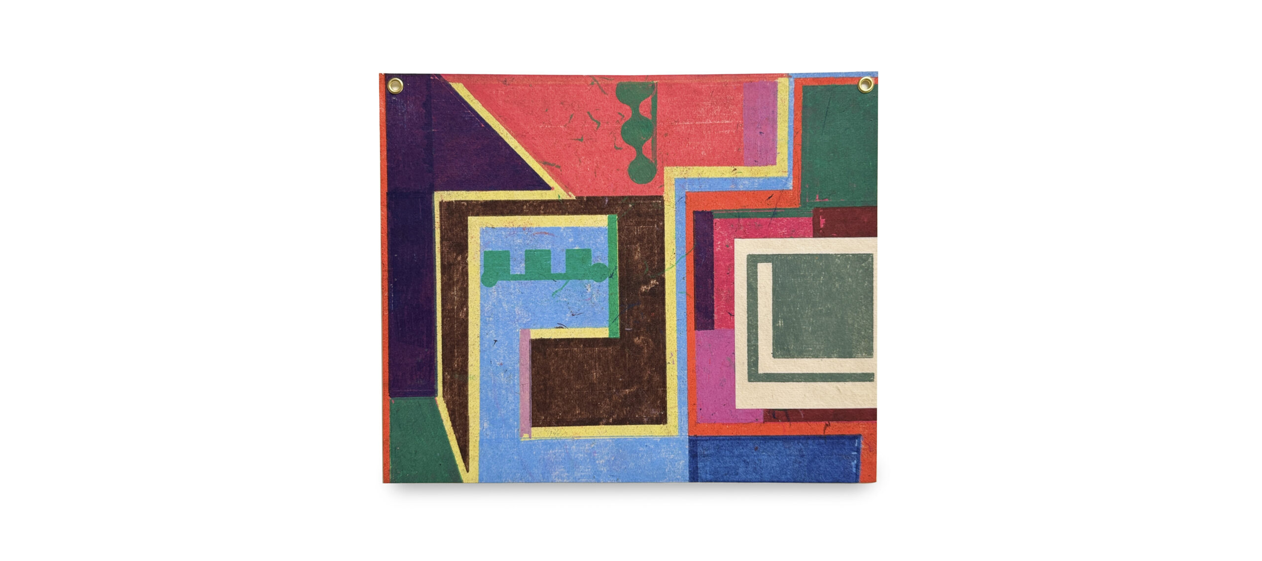 • Sean Sullivan, The Third Floor, 2024, oil stick on Kitakata paper, brass rivets, 8 x 10 inches