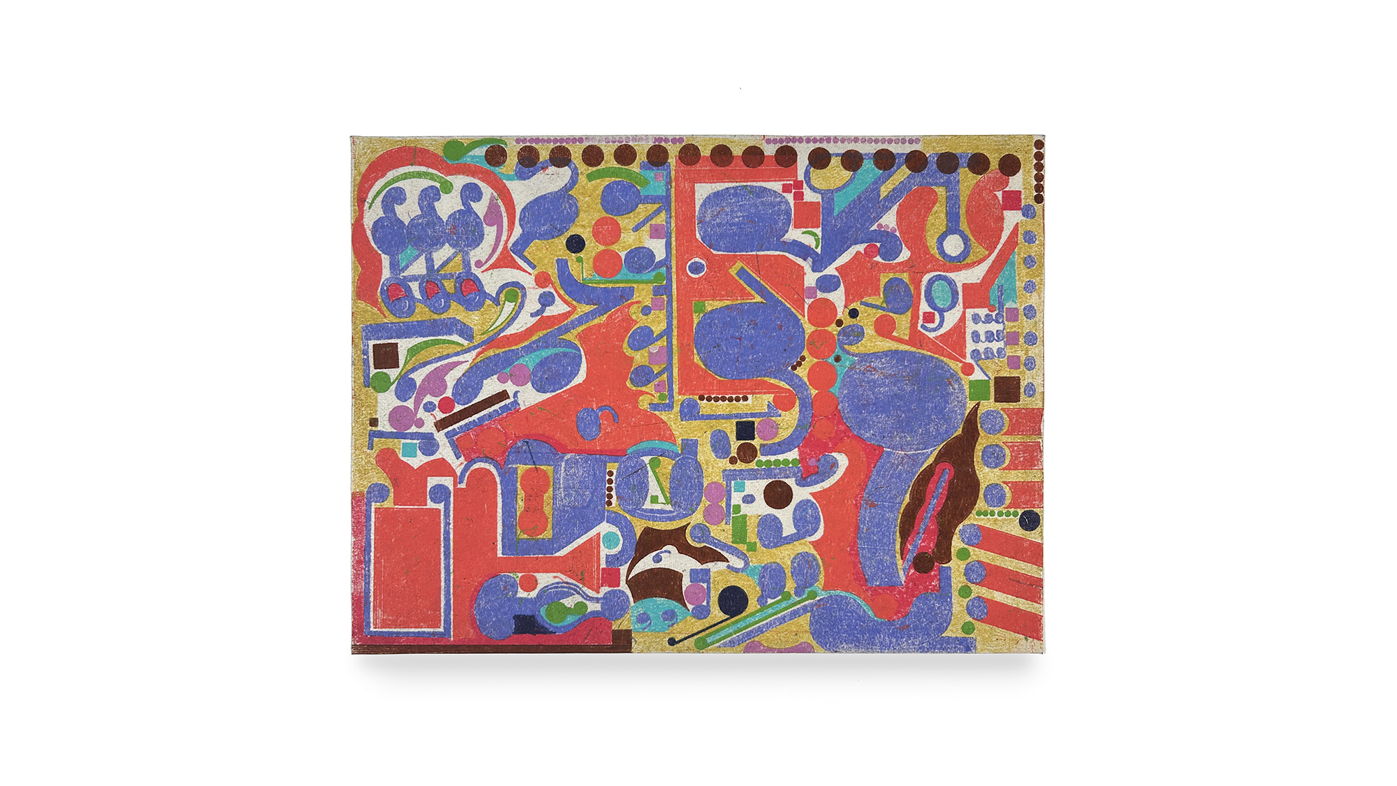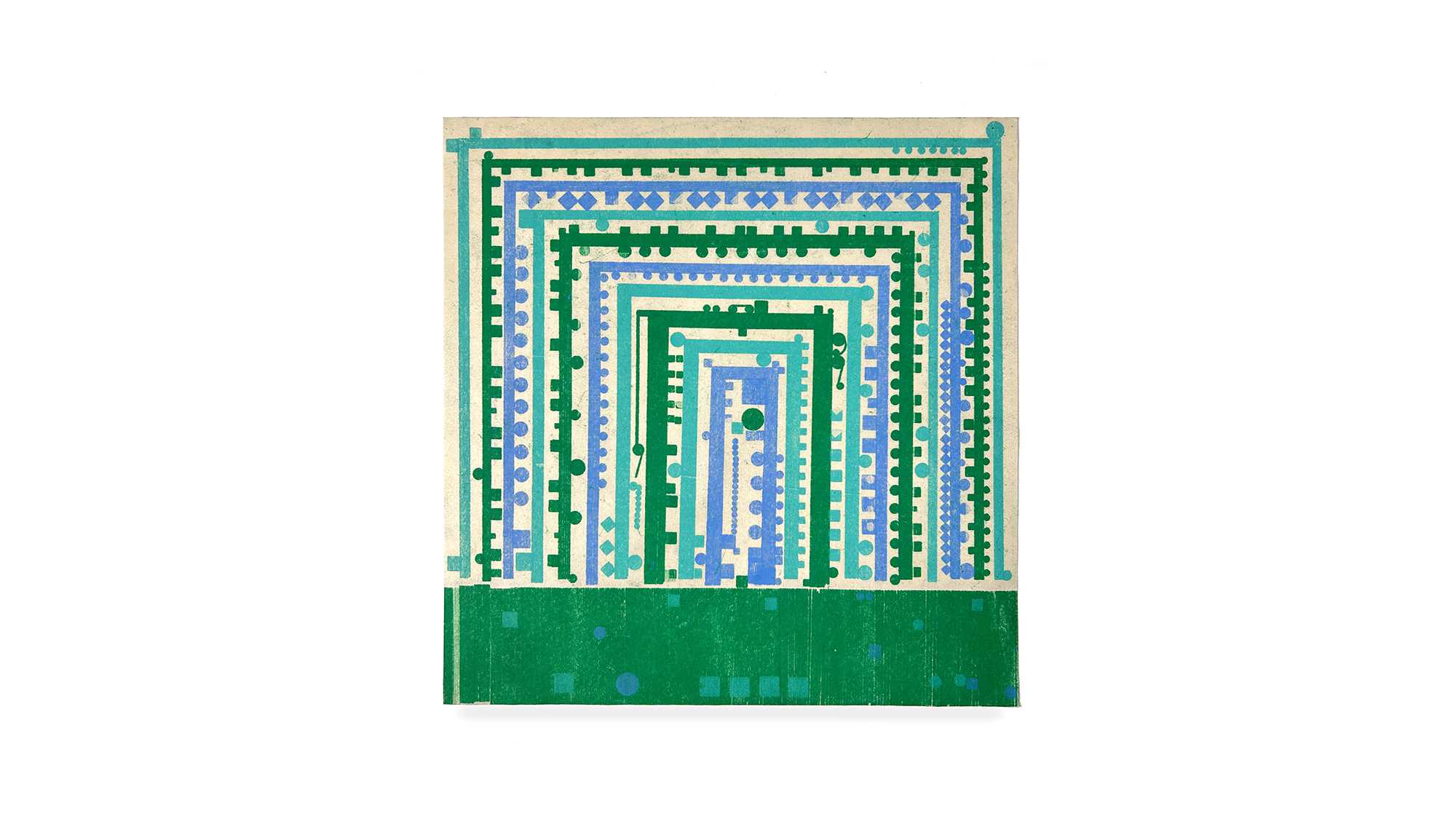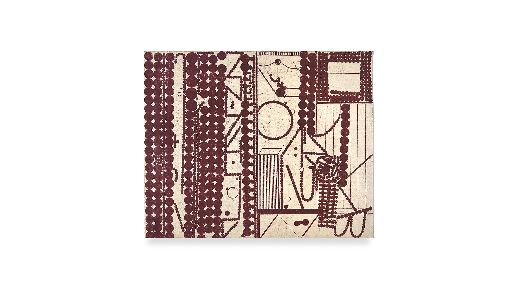 One aspect of Sullivan’s work that is often overshadowed by the unique formal presence of each piece is the subtle dimension of mediation used to build layers of nuance and history. By activating a transfer process that lifts oil pigment from one surface to another—repeating the action for each color—he creates surface qualities that wouldn’t be possible through direct drawing. The in-between-ness of his process keeps the work from becoming fussy or overdetermined. His transfer method adds depth and richness by introducing both the gain and loss of material and color. That element of material interference brings chance into the artmaking process, adding an unpredictable but meaningful dimension. For Sullivan, it seems essential to embrace this degree of indirection in order to enrich the final result.