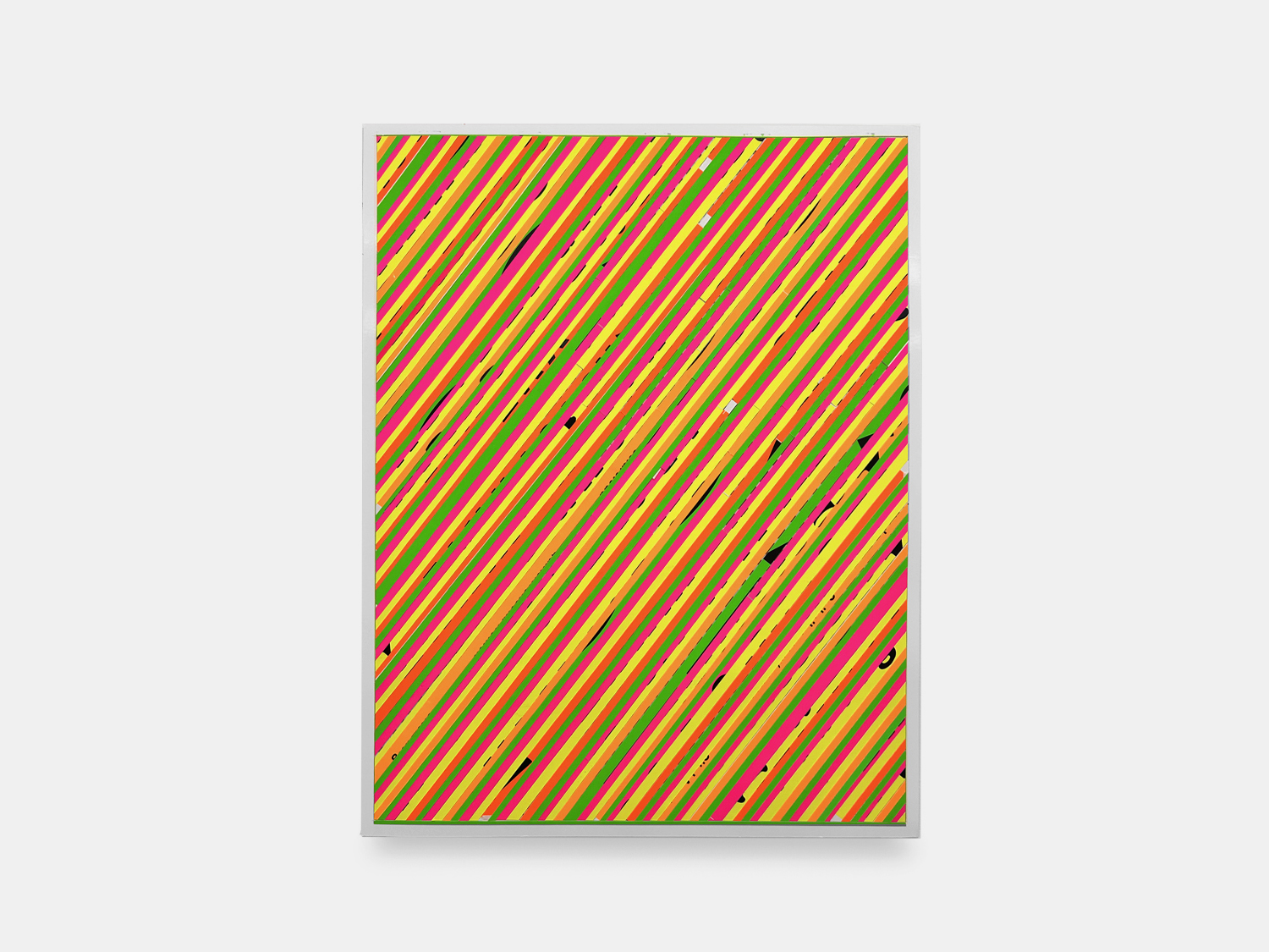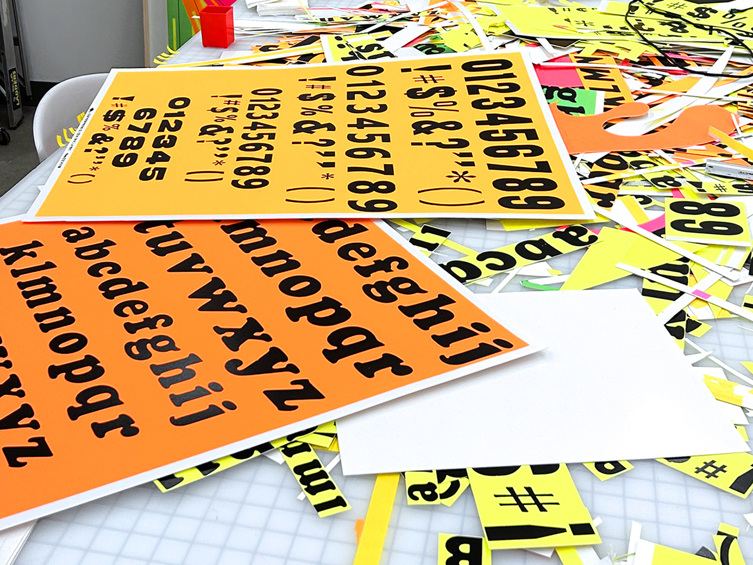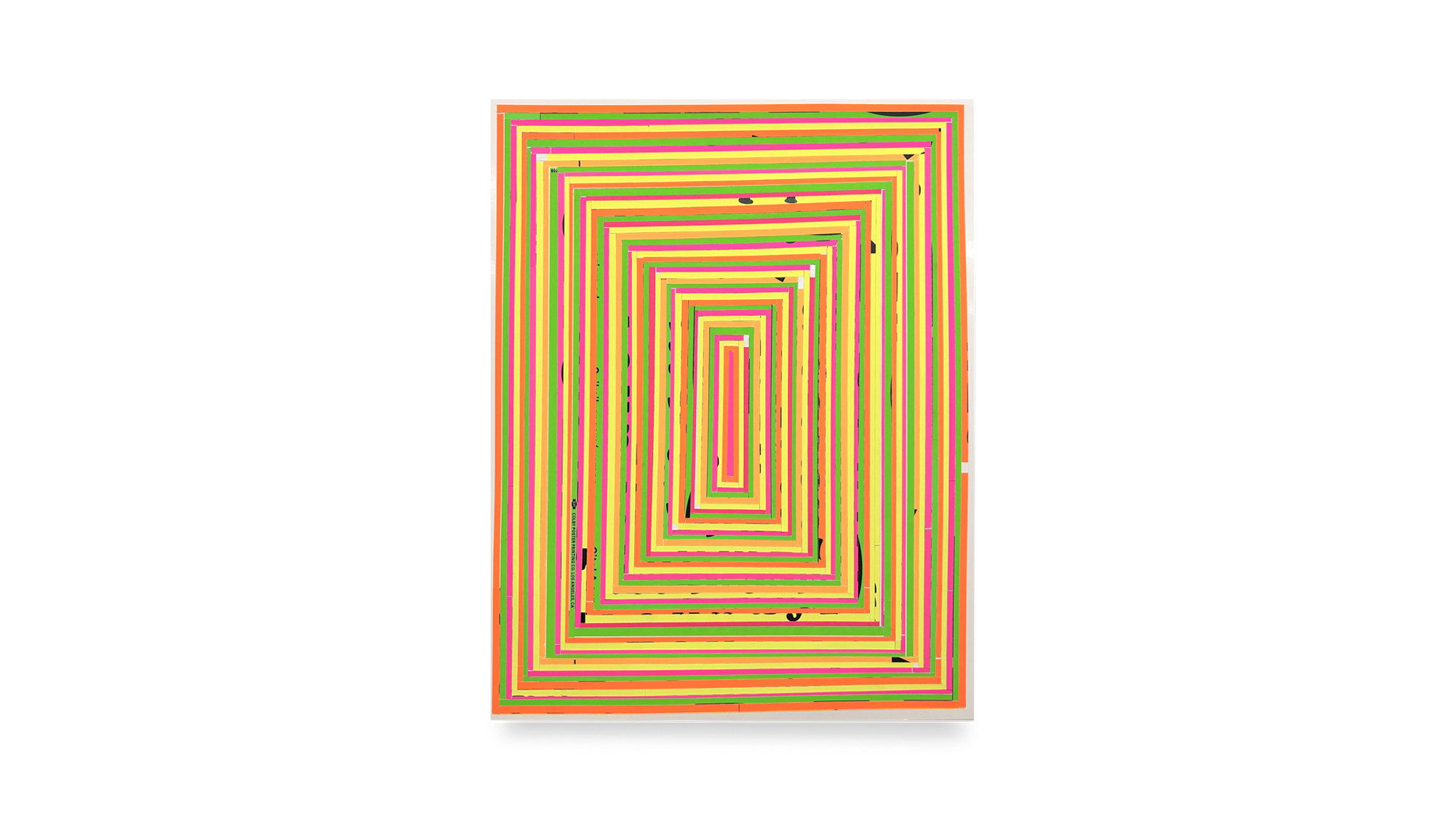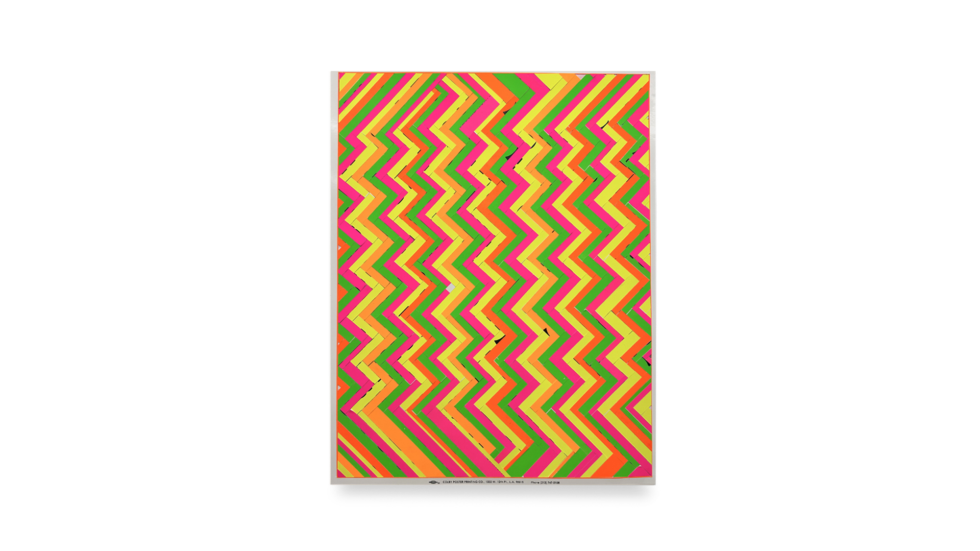 The raw material for this body of work comes from a singular moment in Los Angeles printing history. In the week prior to the closure of the Colby Poster Printing Company in 2012, hundreds of type specimen posters were commissioned by Michlig and printed on the company’s signature fluorescent poly-coated poster paper. Long embedded in the city’s visual culture, these posters now function as both a material source and a cultural archive for Michlig.